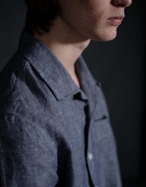Swagger like a rebel to the ball park in this short sleeve boxy shirt, best worn casual in cotton or linen. Inspired by the American style of the fifties. Features a one piece collar, patch pocket, back yoke, short sleeves and short side splits.