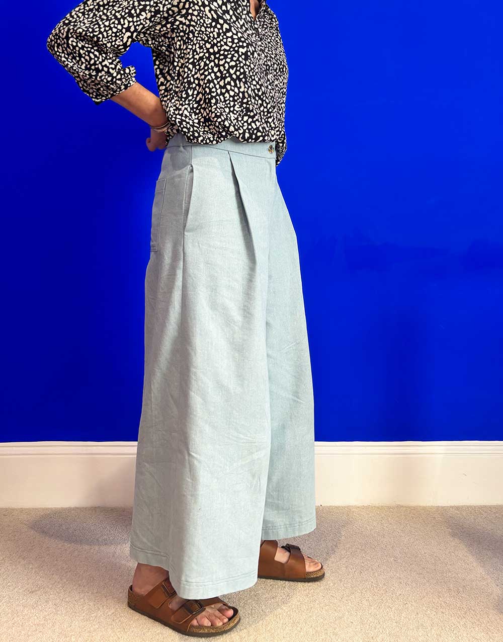 A beautifully tailored project for confident makers, the Juno Culottes from Merchant & Mills feature a classic fly front, front pleats, in-seam pockets, and an easy-fitting elasticated back waistband. With a flattering silhouette and just the right amount of structure, these wide-legged trousers are perfect for pairing with a tucked-in tee or a crisp shirt.