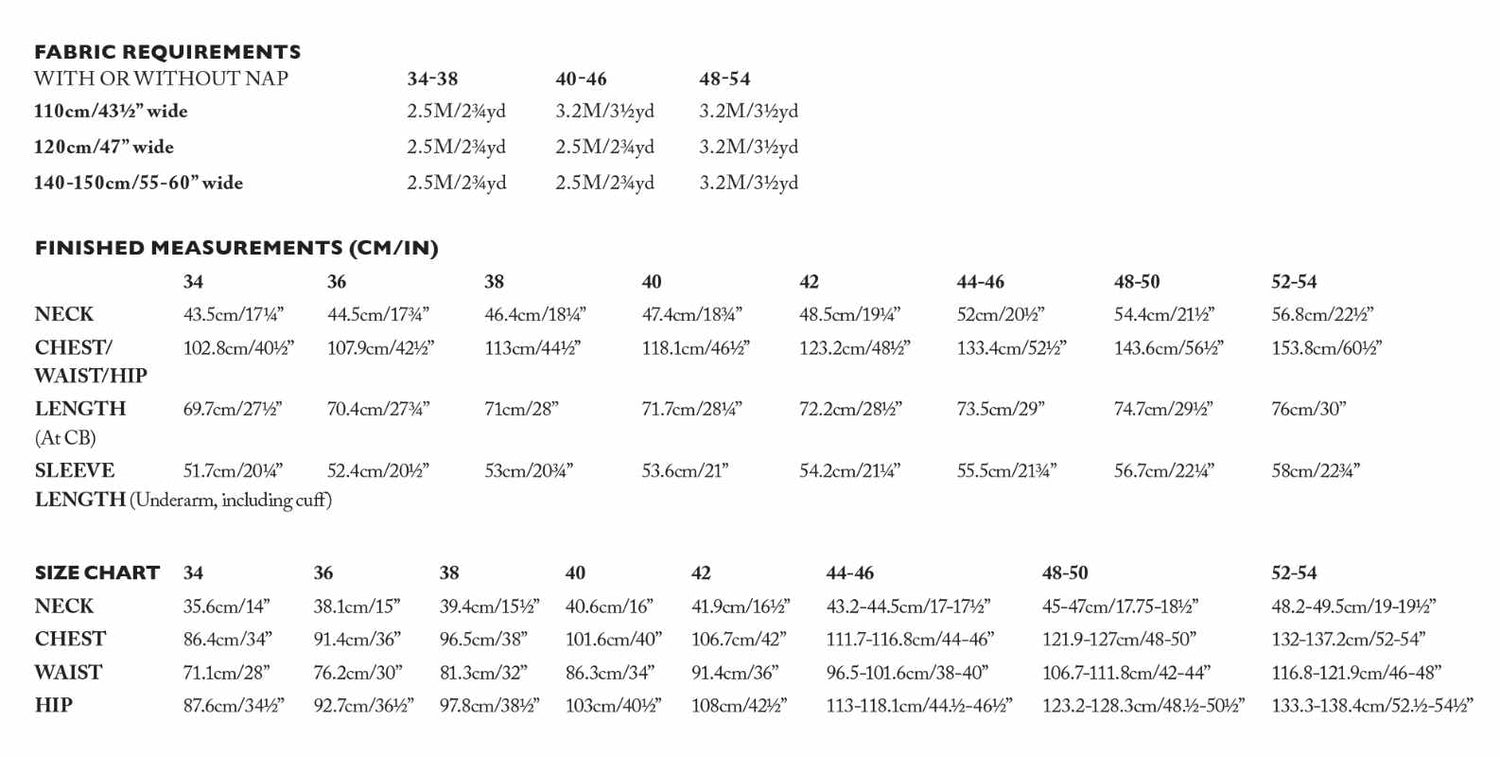 See the FIND YOUR SIZE tab for fabric requirements and sizing.
