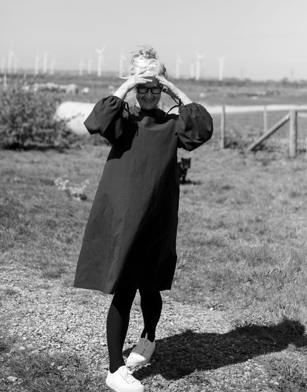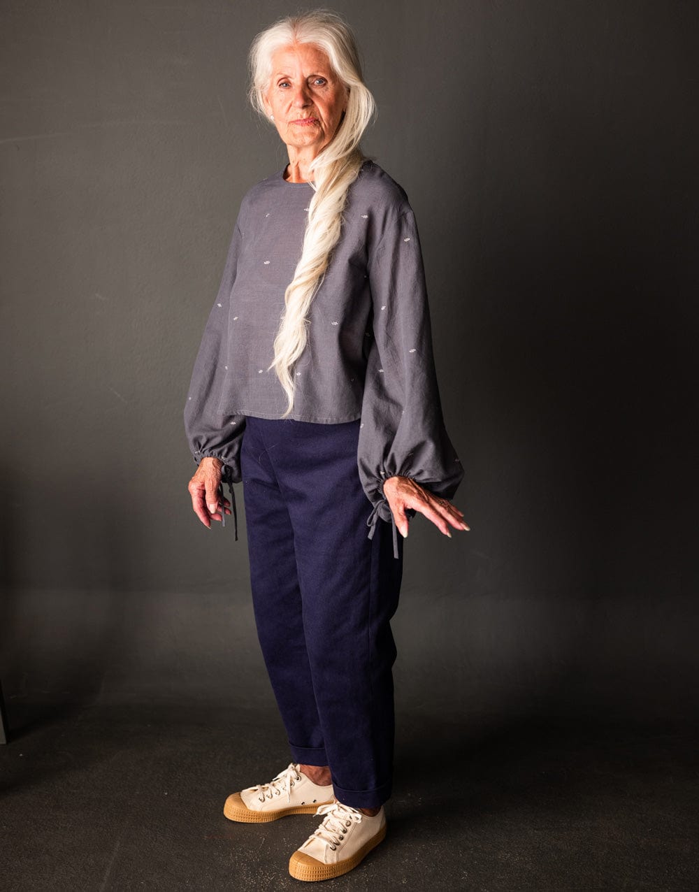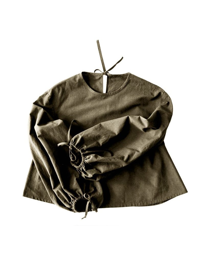 The balloon sleeves of this simple top and dress are the only detail that it requires to stand out. Less is more. The full sleeves are gathered with a tie which is threaded through a buttonhole, alternatively you can omit this buttonhole and insert elastic instead.