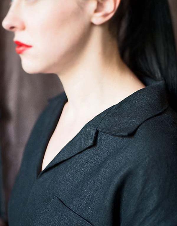 Inspired by working women, with a dash of the Twenties. The Factory Dress slips over the head, features pockets and ready-rolled up sleeves. The Factory dress is "easy fit" so use the bust measurement only for sizing.