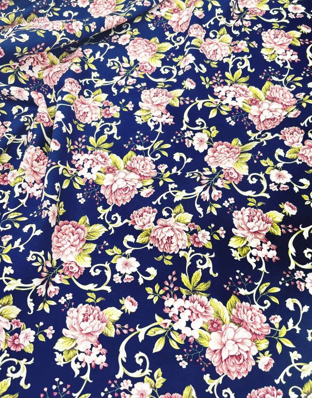 Large Floral Navy & Pink Cotton Poplin Fabric