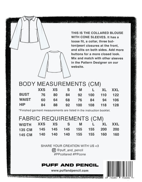 - Collared Blouse & Cone Sleeve Sewing Pattern, Puff & Pencil £19.00Unit price /Unavailable