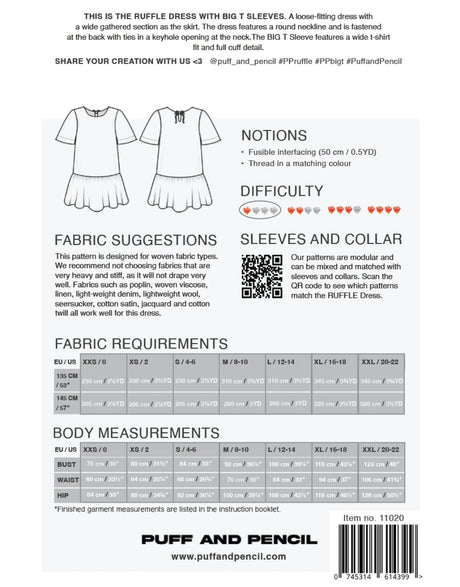 - Ruffle Dress x Big T Sleeve Sewing Pattern, Puff & Pencil £19.00Unit price /Unavailable