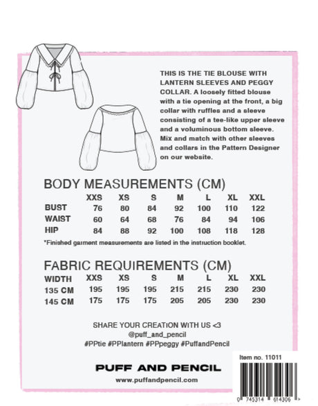 - Tie Blouse, Peggy Collar & Lantern Sleeve Sewing Pattern, Puff & Pencil £19.00Unit price /Unavailable