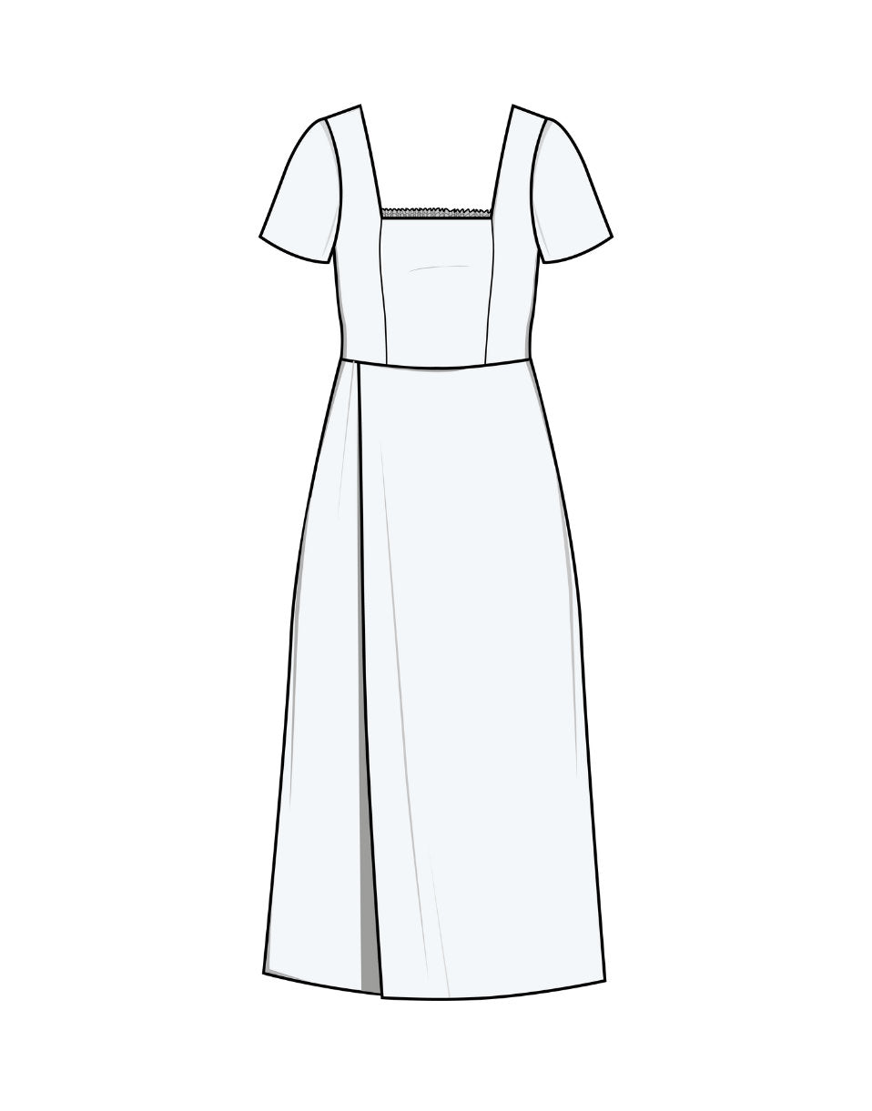 The Palma Dress is a chic, modern design with a flattering fit and elegant lines. A square neckline and princess seams at the bust shape the bodice beautifully, while a wide smocked back panel ensures a snug yet comfortable fit that’s easy to slip on and off. The slim skirt features a front slit that opens as you walk, adding a touch of movement and allure.
