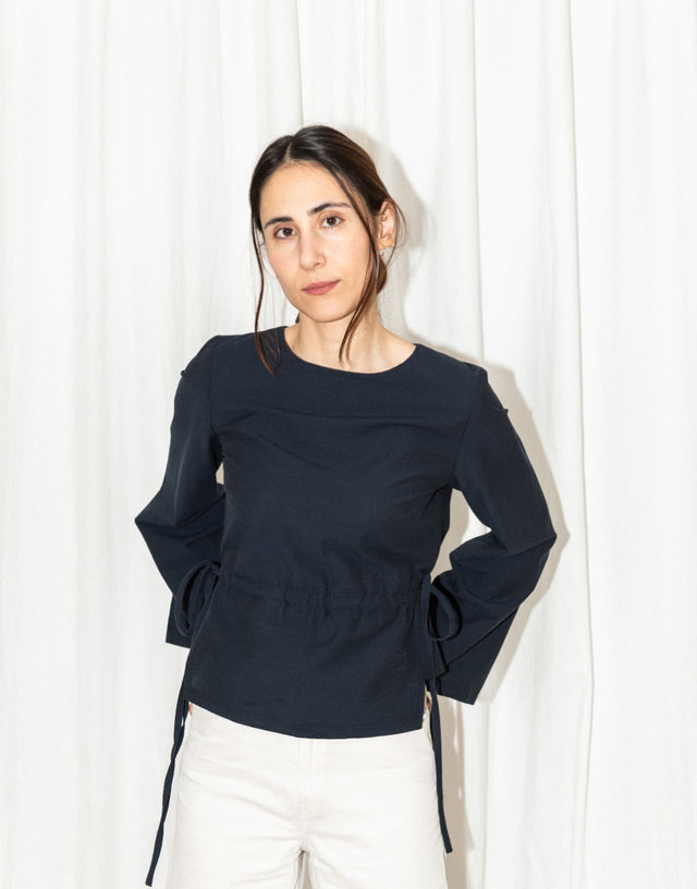 The Tie Waist Blouse pattern features a pull-over blouse with long ties and a casing across the waist which can be adjusted to your desired level of snugness. The Cone Sleeve is a classic cone-shaped sleeve.