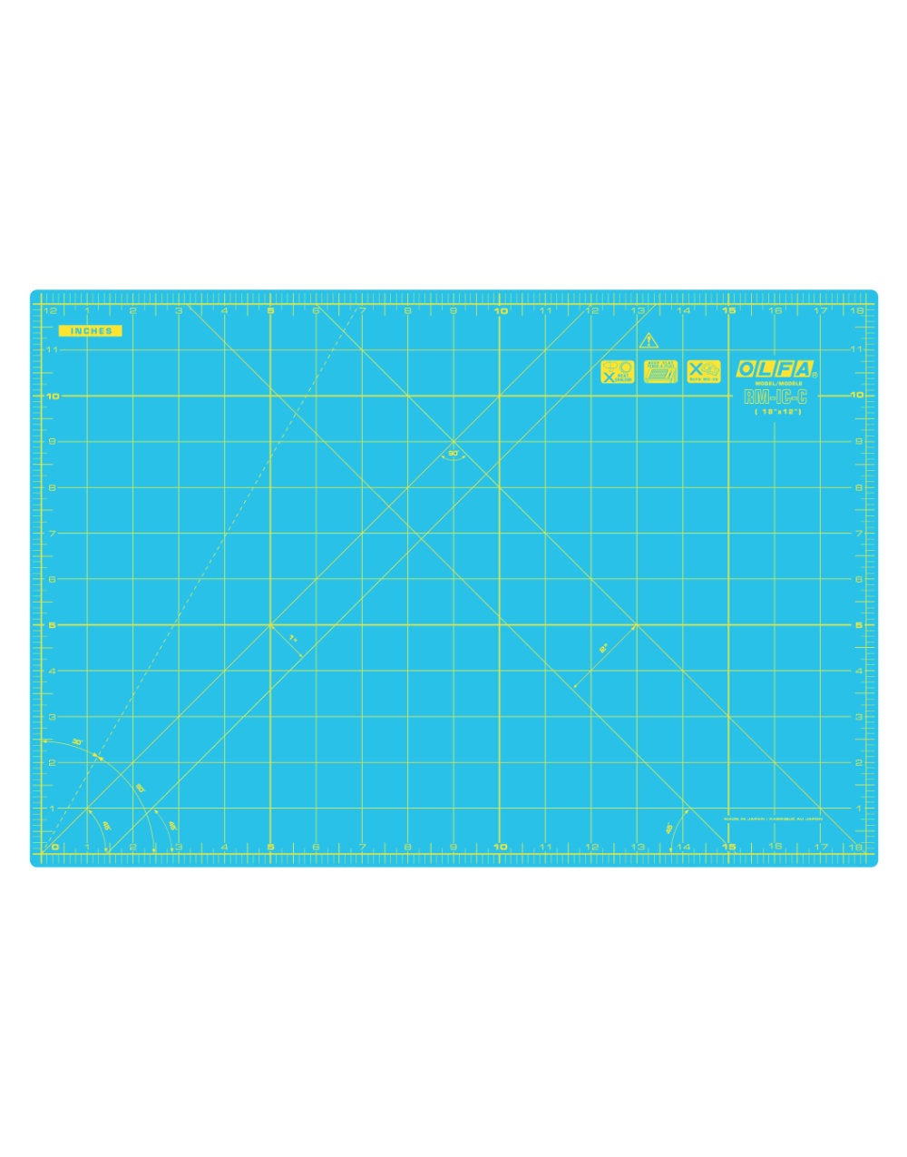 The mat's grid lines are designed for easy measuring and accurate cutting of straight lines and precise angles. Double sided, inch and centimetres.