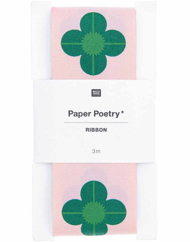 Lucky four leaf clover ribbon in a handy pack of 3 metres. Ideal for crafting and wrapping!