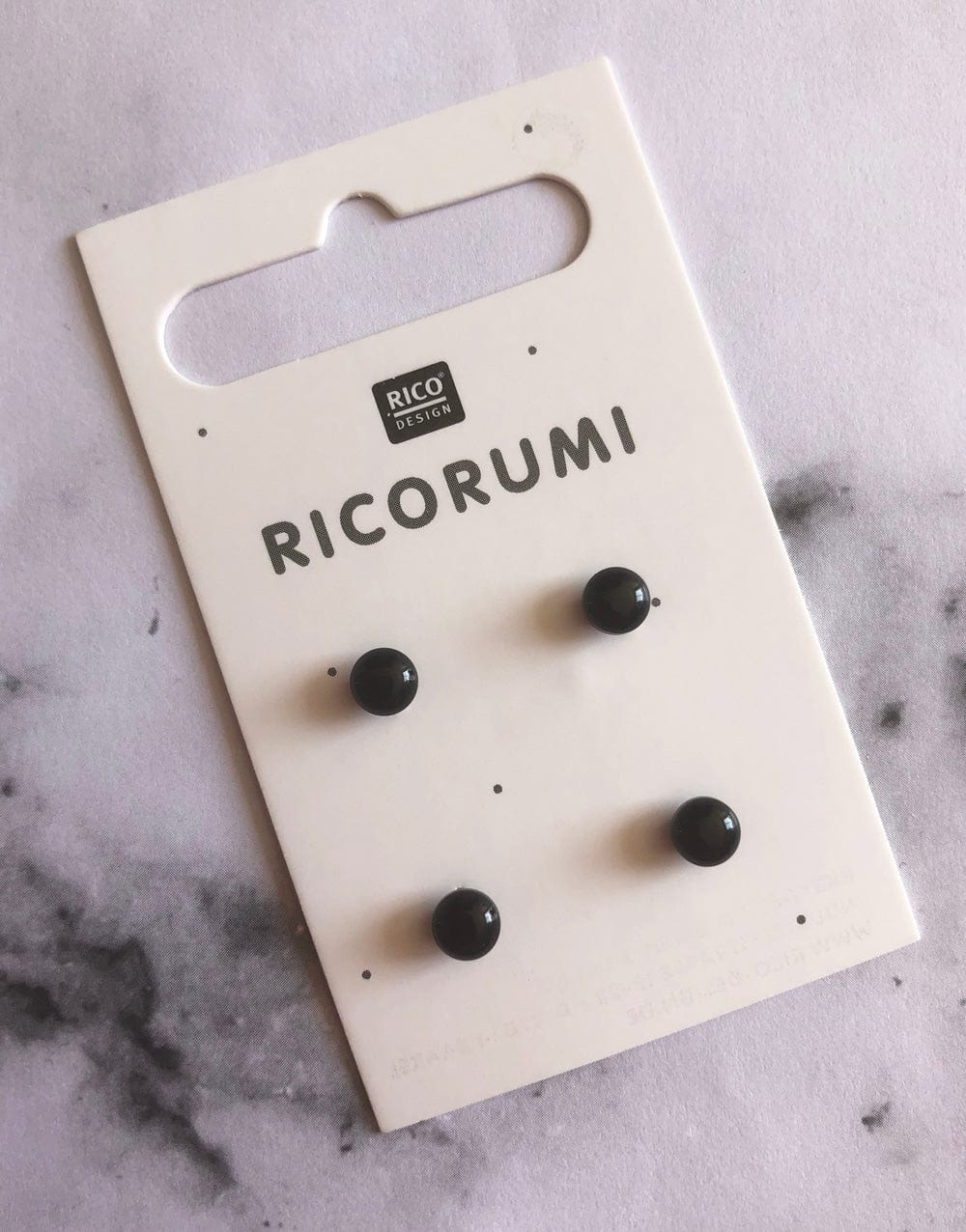 Ricorumi eyes let you personalise your amigurumi creatures, stuffed toys, figurines and other soft toys. Sold as a card of 4 eyes.