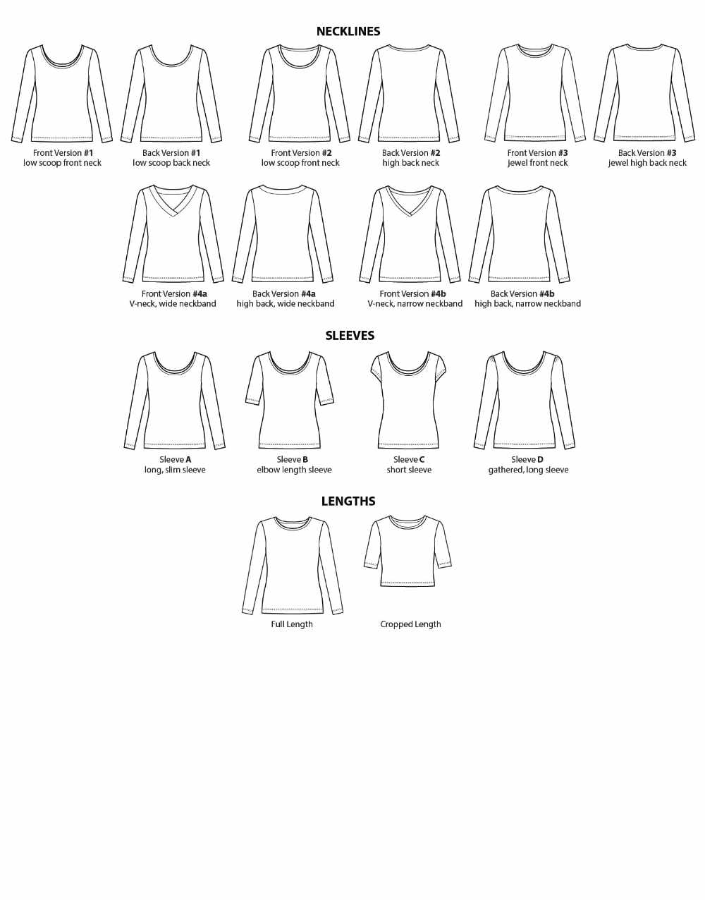 - Length #4 - V-neck with a wide neckband (4a) or a low, narrow neckband (4b).