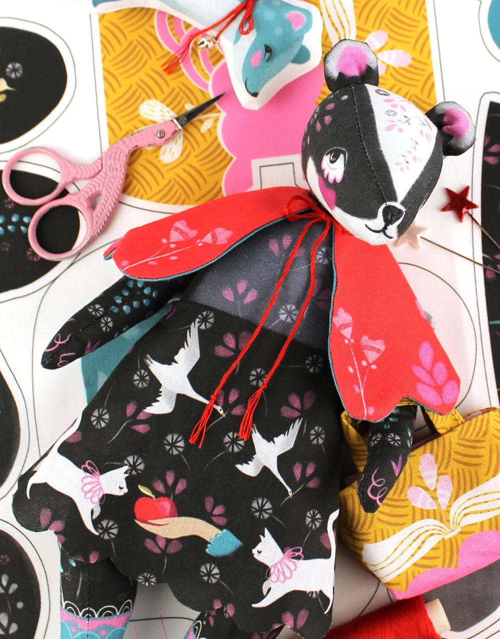 Bibli the Badger Librarian & Singing Stoat Dolly Sewing Kit, Miss Ella