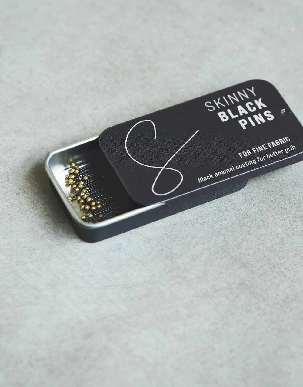 Skinny Black Dressmaking Pins in a Tin, Sewply