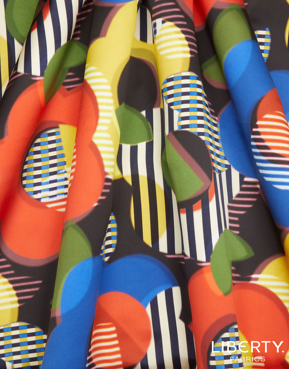 Memphis Style celebrates Liberty’s bold avant-garde spirit, inspired by the 1983 exhibition of the radical design group Memphis Milano. Featuring spherical daisies with overlapping shadows, graphic cutouts, and contrasting stripes, this dynamic design bursts with playful energy and striking geometric illusions.