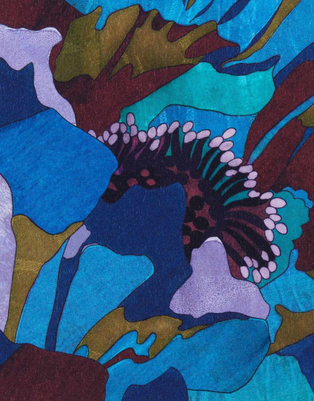 Exploring the flower as a vehicle for abstraction, this striking block coloured design was originally printed as a Liberty scarf in 1968. Dramatically cropped and zoomed-in, monumental peony petals create symphonies of contour and texture by revealing a fluid camouflage pattern.