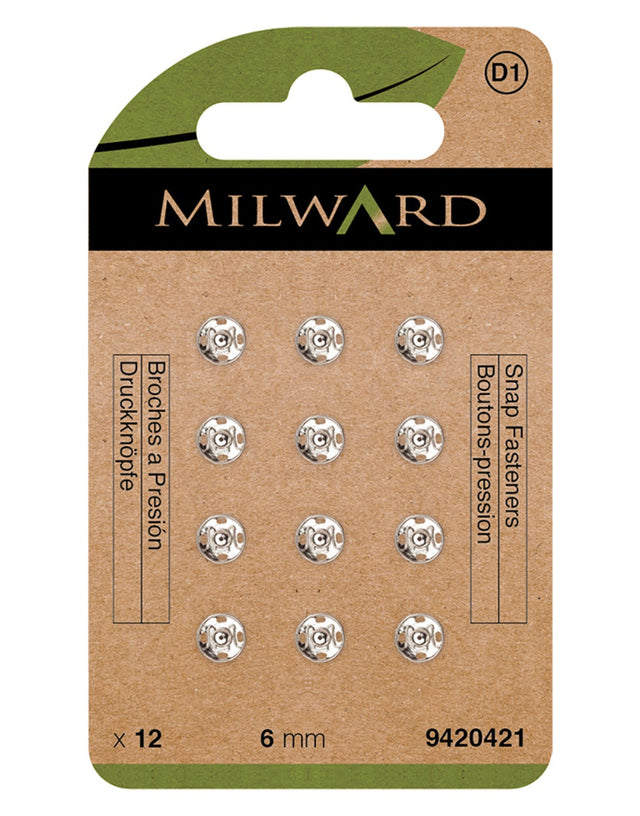Milward Green Sew-on Snap Fasteners, Nickel 6mm