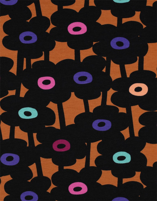 A light sweatshirt fabric with a loop back in an amazing stylised floral print from Nerida Hansen. Ideal for dressmaking, children's clothing and accessories.