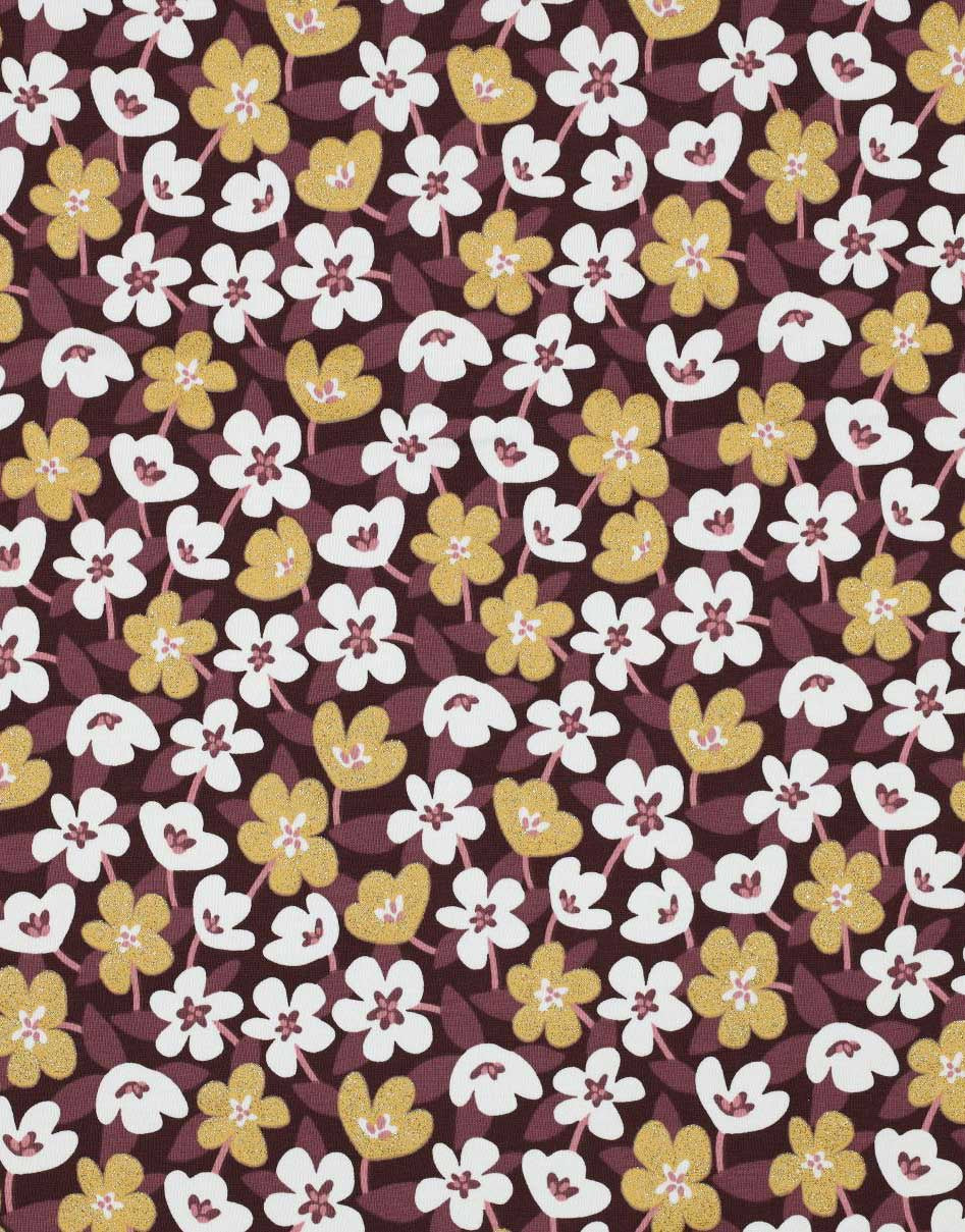 Wine Red Glitter Flower Cotton Jersey Fabric
