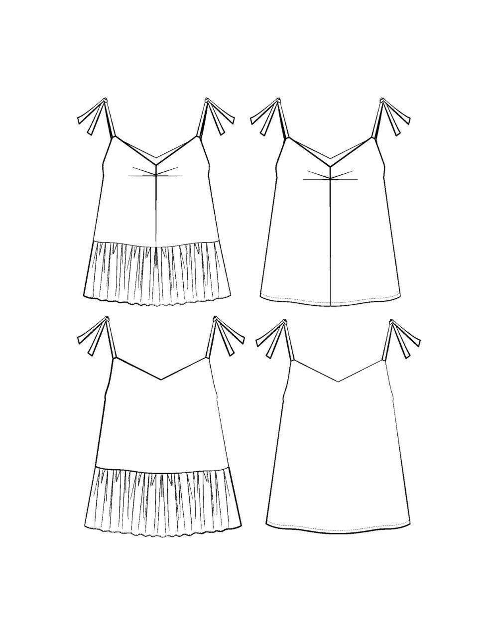 A non-lined version is also possible, thanks to facing pieces for the neckline... A perfect companion for hot summer days, the pattern offers multiple variations: with or without a ruffle, with or without lining, allowing you to create your ideal version. This sewing pattern is easy to make, with beautiful finishes - in short, simply irresistible!
