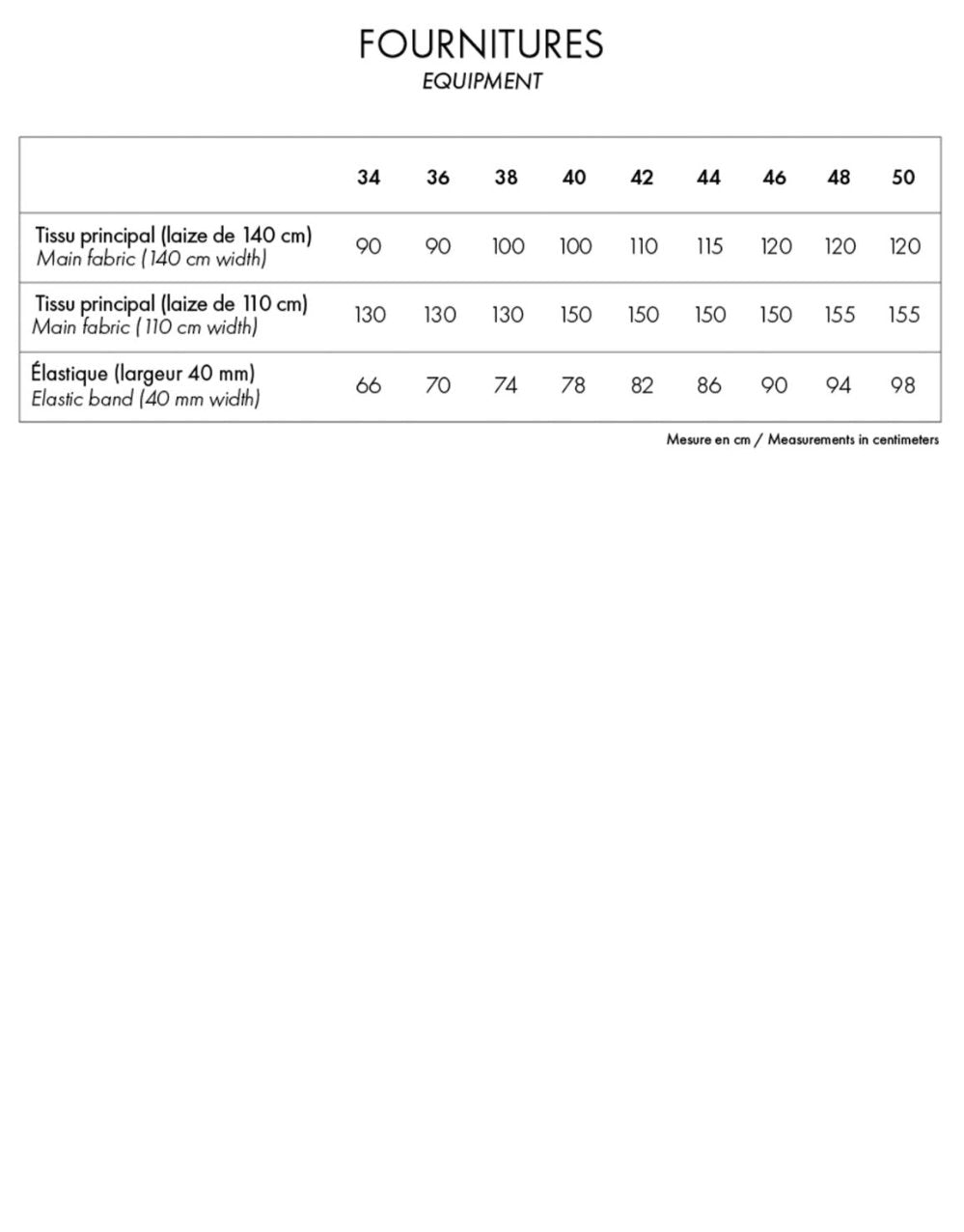 Main fabric (140cm width) 90 90 100 100 110 115 120 120 120