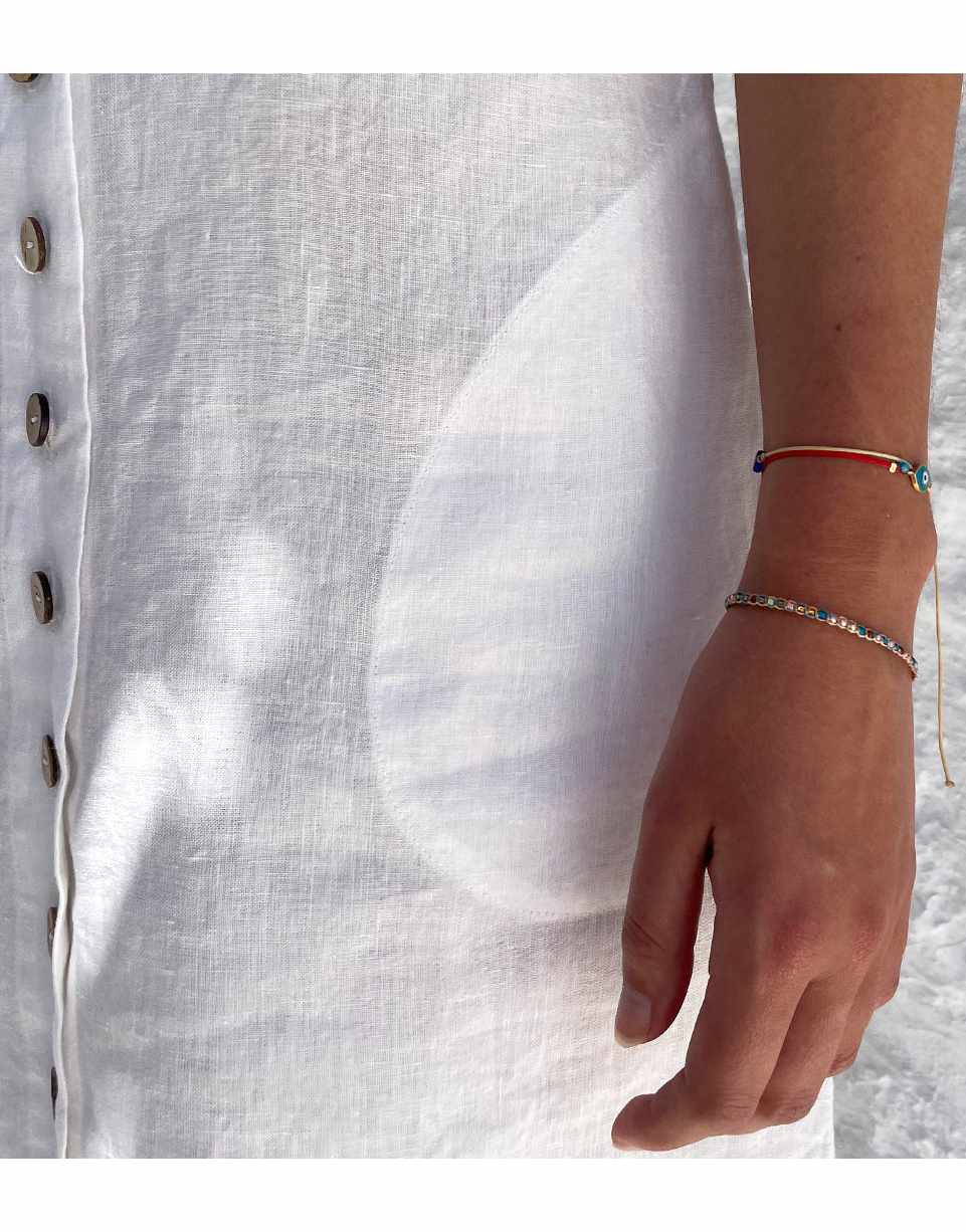 Ophelia is the ultimate sundress designed for warm days and balmy nights. It is fitted above the bust with bust darts and wide, comfortable shoulder straps and neckband; subtly shaped at the waist and gently flared to the midi-length hem. Topstitching highlights the button through the front, stitched down, inseam pockets, centre back seam and wide hem.
