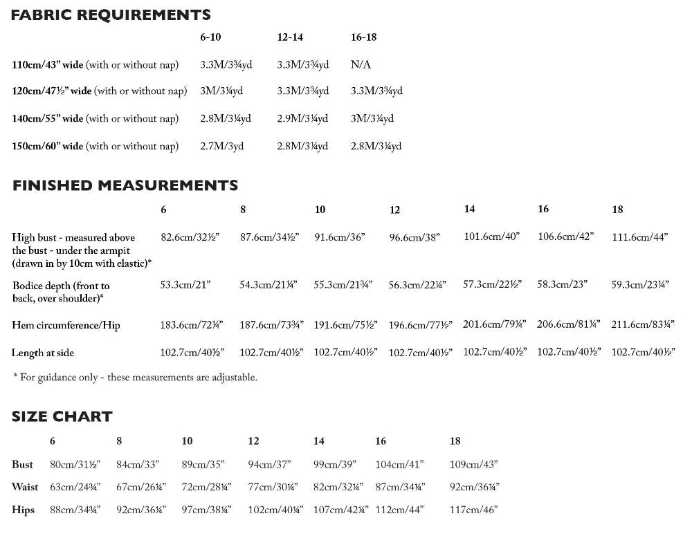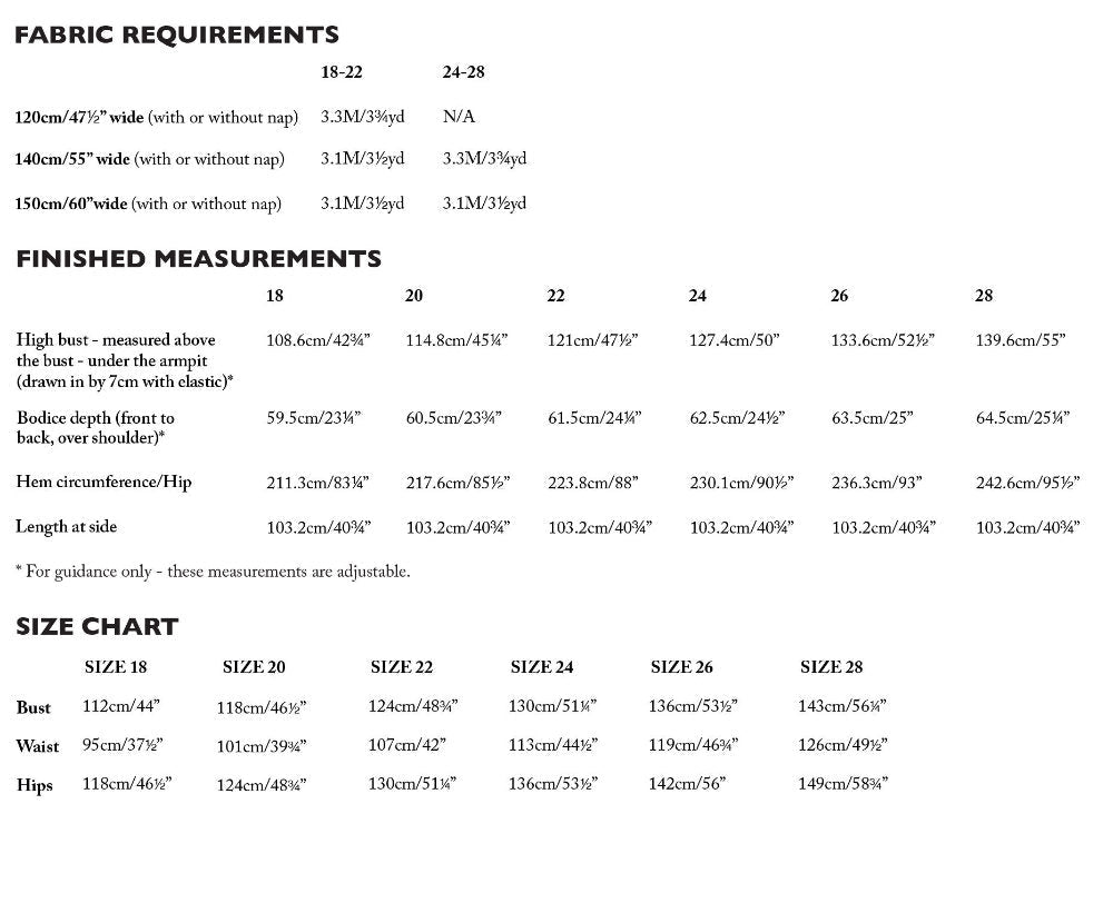 Please see FIND YOUR SIZE tab for fabric requirements and sizing.