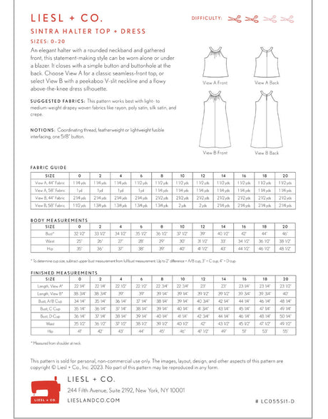 - Sintra Halter Top & Dress Sewing Pattern, Liesl + Co £22.00Unit price /Unavailable