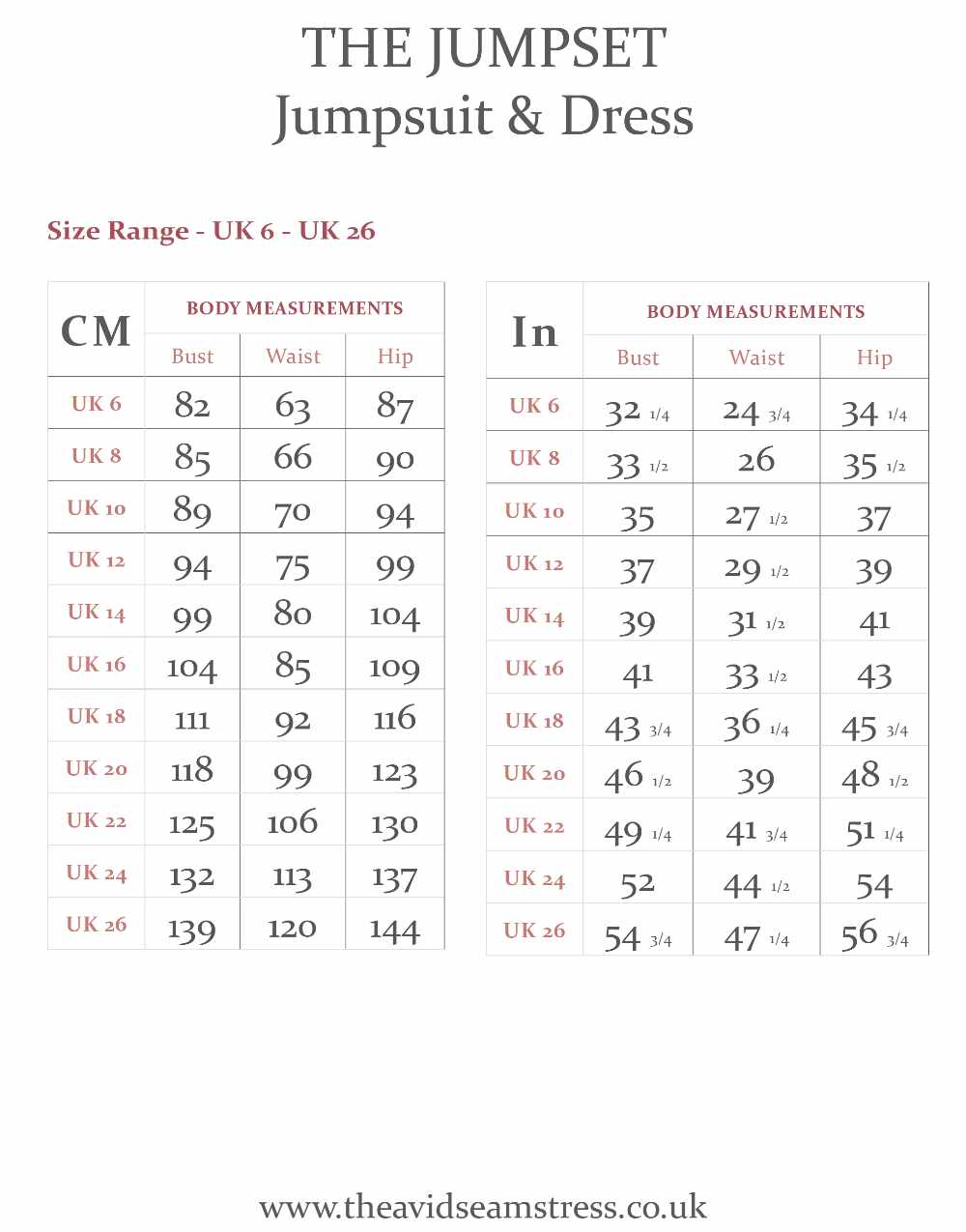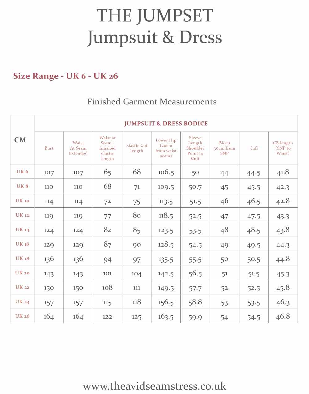 NB For sizes 24 -26 the fabric ust be at least 116cm wide for these sizes.