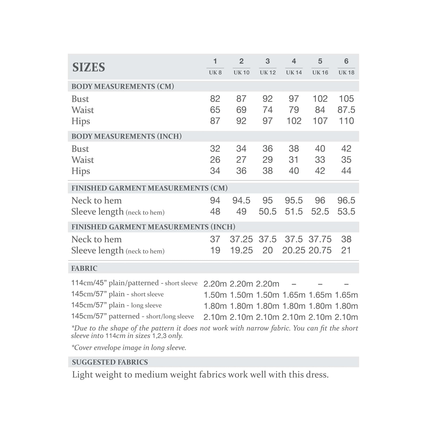 New to sewing? No worries! With minimal pieces to cut out and the option to create a looser fit without the elastic waist, this is a dress you'll love to wear year-round. Sizing UK 8-18