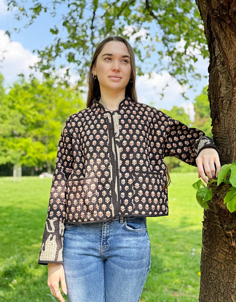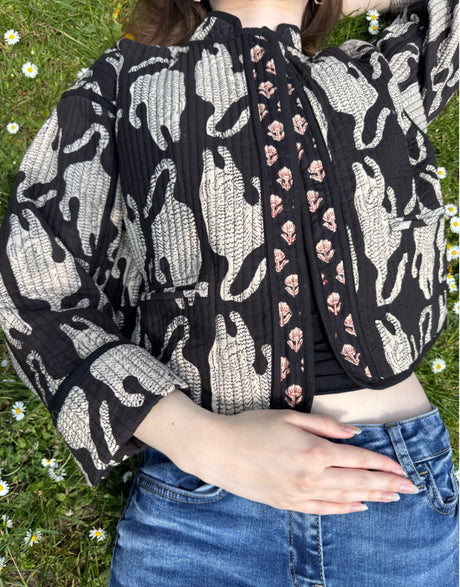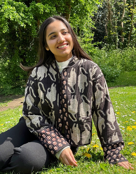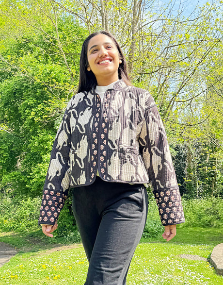 Reversible Quilted Cotton Padded Jacket, Big Cat & Mughal Motif