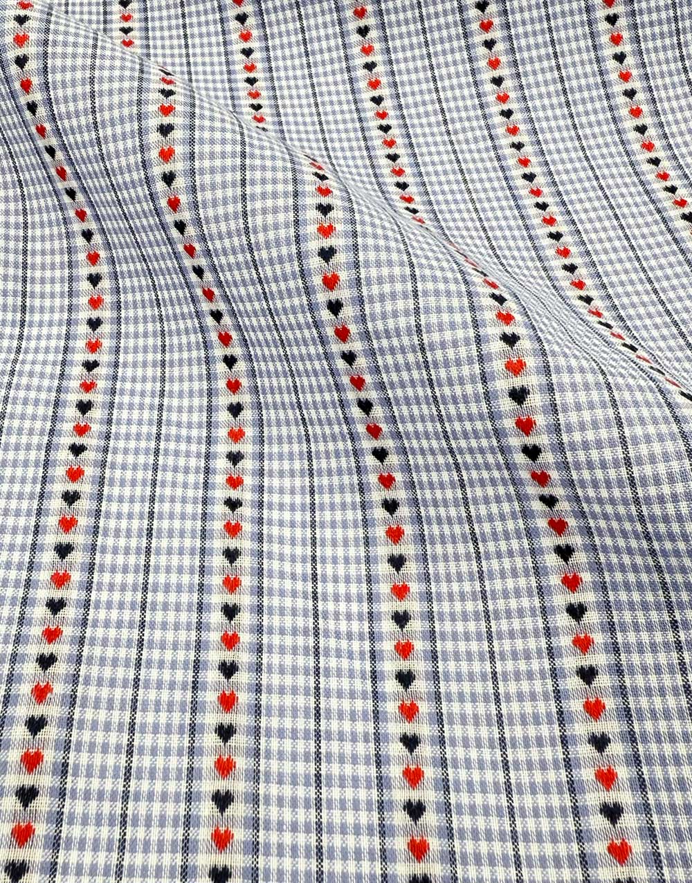 This kit uses a blue gingham cotton softened with embroidered jacquard stripes. Lightweight and airy, the fabric feels gentle against the skin and drapes softly, which is ideal for pyjamas. Combining the timeless charm of gingham with a playful twist, it makes for a pair of bottoms that are both classic and a little bit special.
